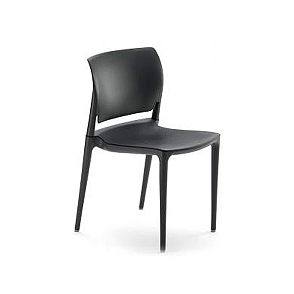 Silla apilable (Segis-Italia) que combina un estructura de polipropileno con moldeo por inyección de aire y la integración de un dispositivo innovador entre el asiento y el respaldo, permitiendo que se flecte con los movimientos del usuario. Asiento en polipropileno, disponible en diferentes colores o revestidos de imitación de cuero o tela. Certificaciones de calidad internacionales. Garantía 2 años.