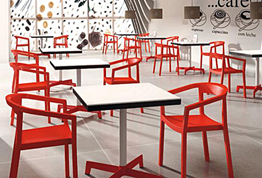 Silla con brazos para uso interior y exterior. Fabricada en polipropileno inyectado y reforzado con fibra de vidrio. Con filtro UV. Certificación de calidad internacionales. Garantía 2 años.