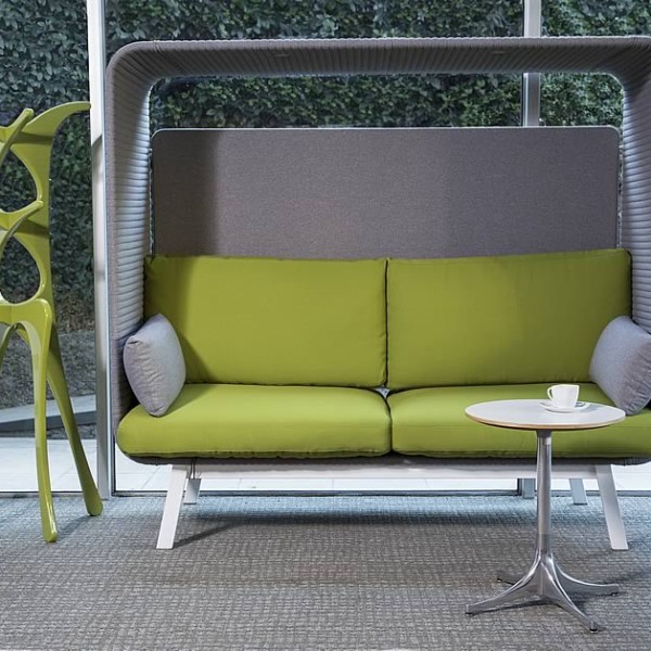 El diseño de este sillón o sofá permite disfrutar de la comodidad y privacidad en un espacio abierto, gracias a su sistema de acústica. Creado para áreas lounge de las organizaciones.