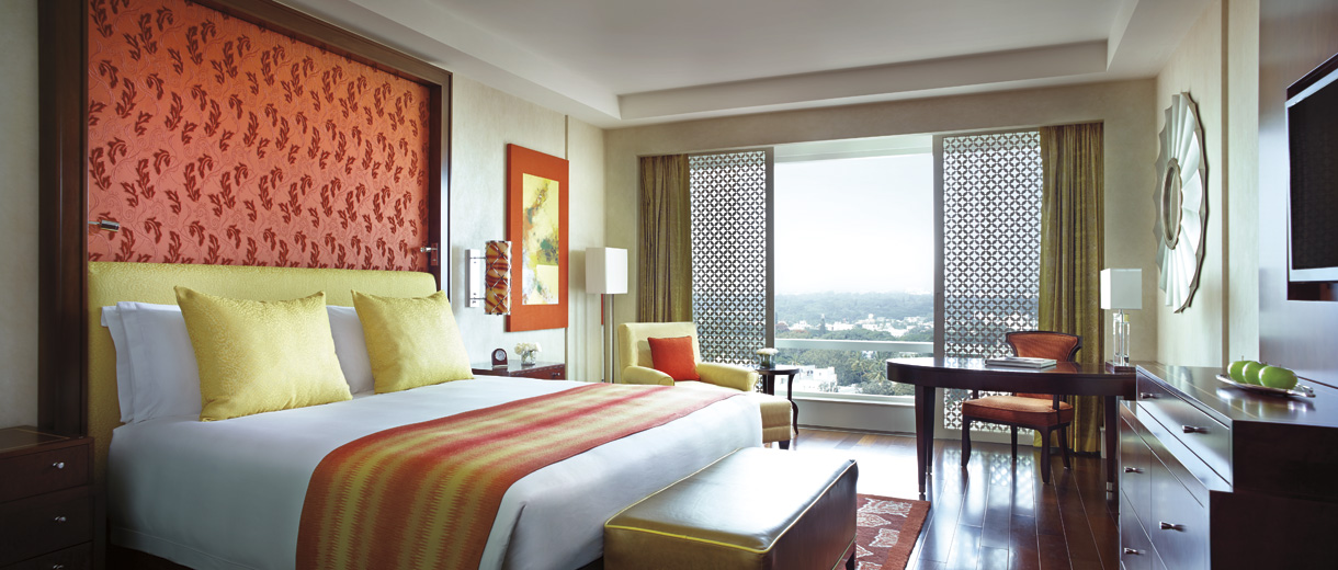 5-star hotel accommodations at The Ritz-Carlton, Bangalore offer a space to relax and enjoy panoramic city views.