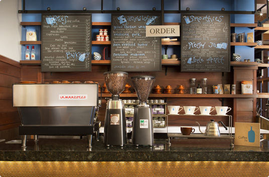 Café Blue features fresh pressed juices and smoothies, signature house-made Paninis and pastries and 100% organic Blue Bottle Coffee beverages. Café Blue is located in the upper lobby of the resort offering convenient counter-service and café seating to guests overlooking the back patio of the resort.