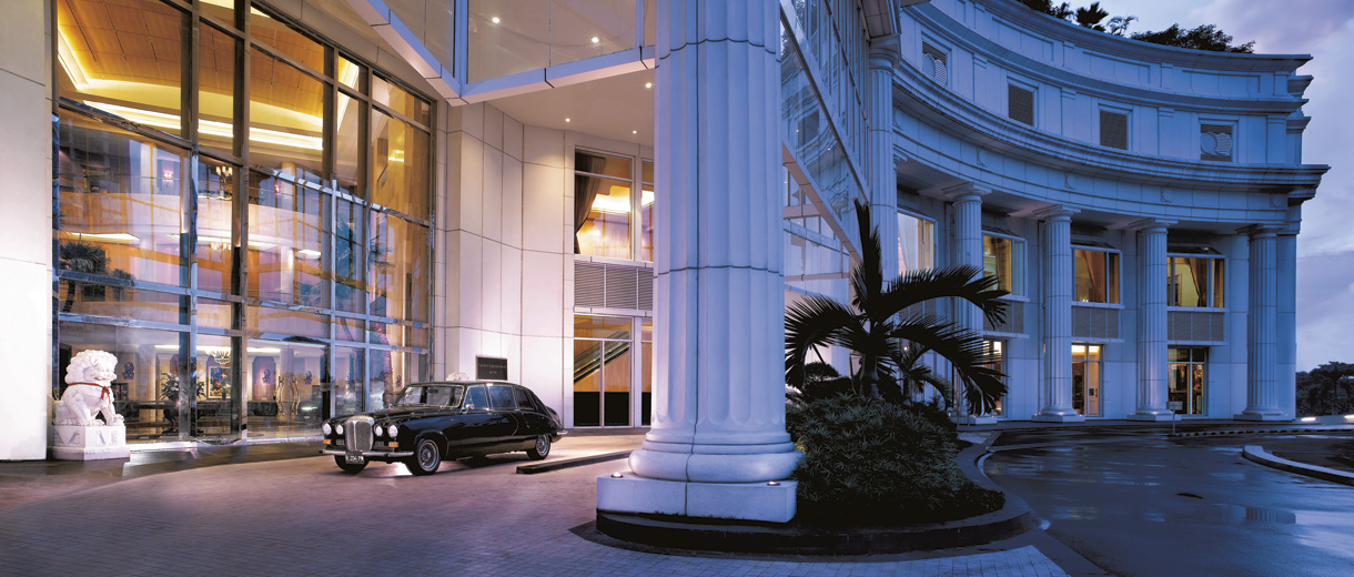 Stately columns and a grand porte cochere welcome guests to our luxury hotel in Jakarta, located in the upscale Mega Kuningan district.