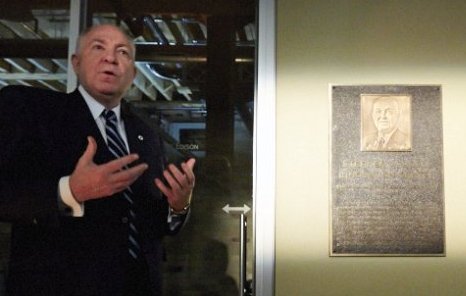 Stephen Roell speaks after the unveiling of a plaque in his honor at the Stephen A. Roell Innovation Center in Milwaukee. Roelll retired as chief executive officer of the company on Oct. 1, 2013.
