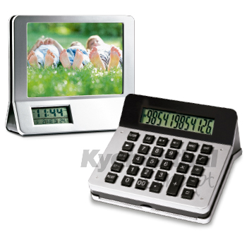 CALCULADORA 12 DIGITOS Y MARCO DE FOTO, CALENDARIO, TERMOMETRO, RELOJ+ALARMAEN CAJA