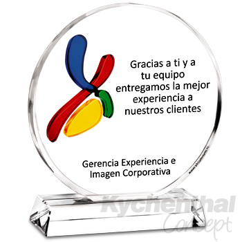 TROFEO, CRISTAL, REDONDO SOBRE BASE, DIAMETRO 15O X 20 MM (APROX.), EN CAJA DE LUJO