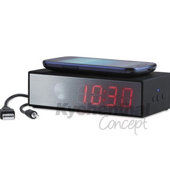 PARLANTE / ALTAVOZ INALAMBRICO USB CON RELOJ Y ALARMA, BATERIA RECARGABLE INCORPORADA EN CAJA DE LUJO NEGRA